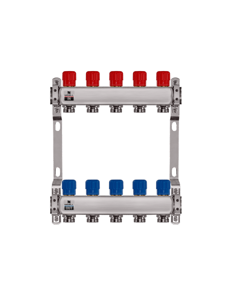 Manifolds for radiator heating, WiRo product line, are made of brass grades CW614N and CW617N, manufactured in the range of sizes from 2 to 18 circuits.